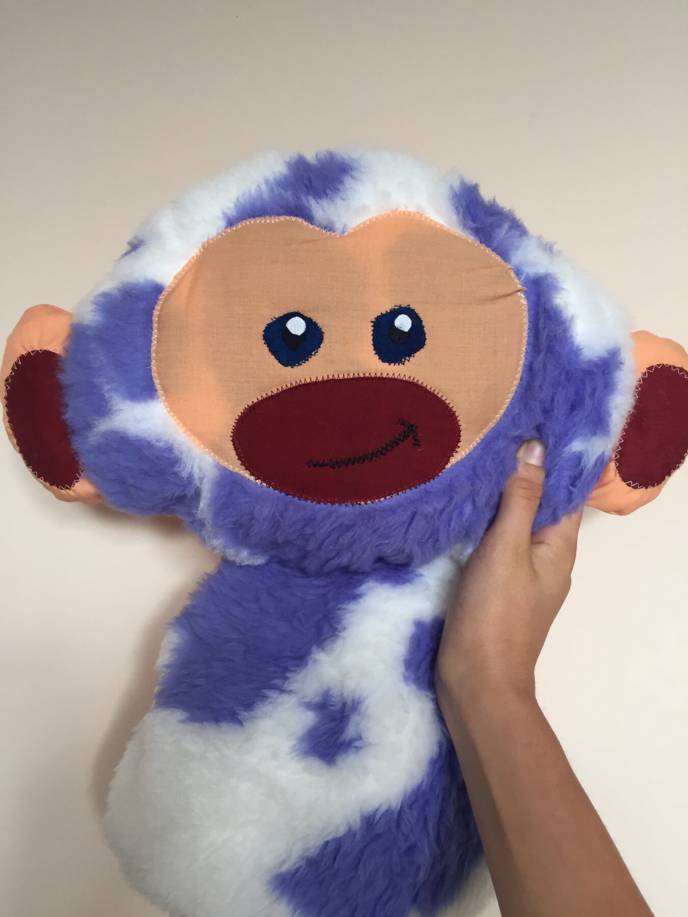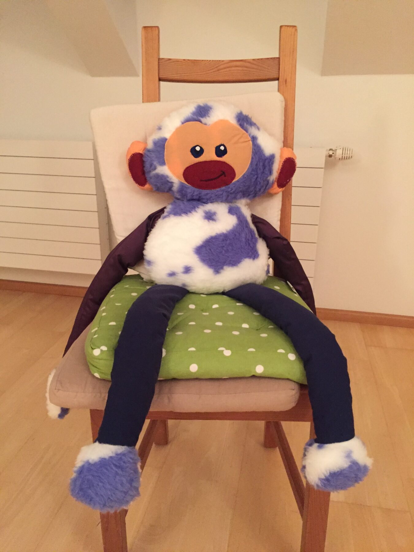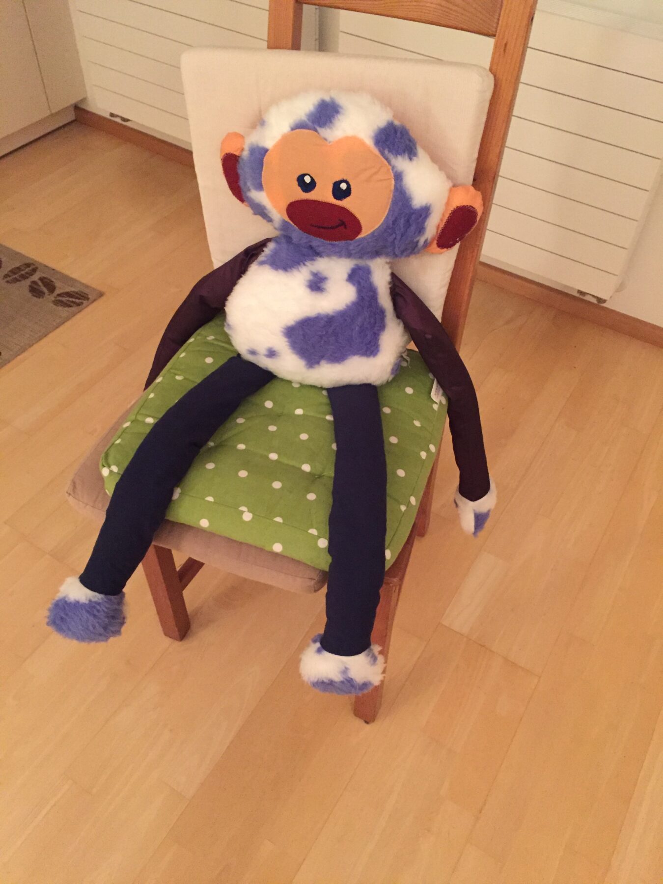 Da eine Freundin von mir Affen sehr gerne hat, dachte ich mir, ich nähe ihr einen XL-Affenkuscheltier. Da ich nicht die richtigen Stoffe und Farben hatte, ist es einfach ein Milkaaffe geworden 😉